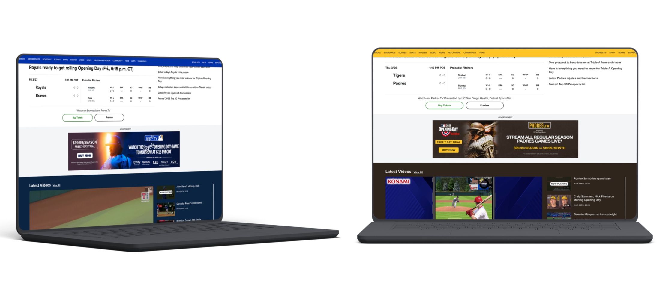 I designed & built out assets for numerous MLB Club teams launching their streaming subscriptions for the 2026 season.